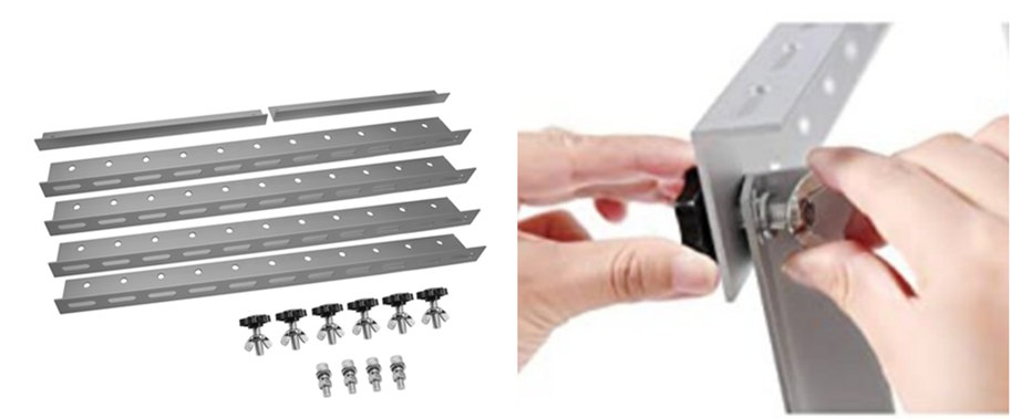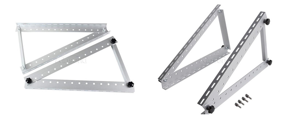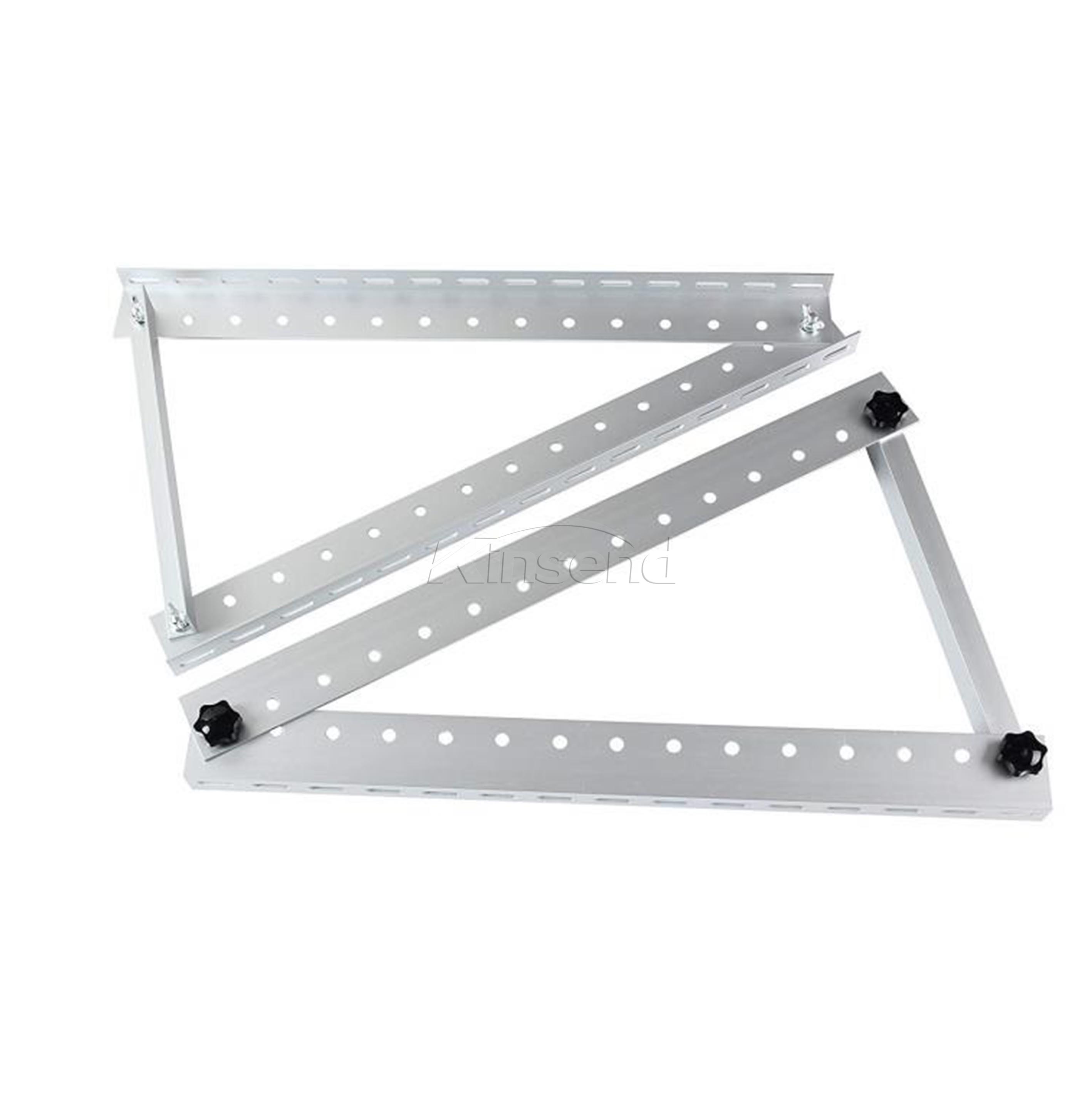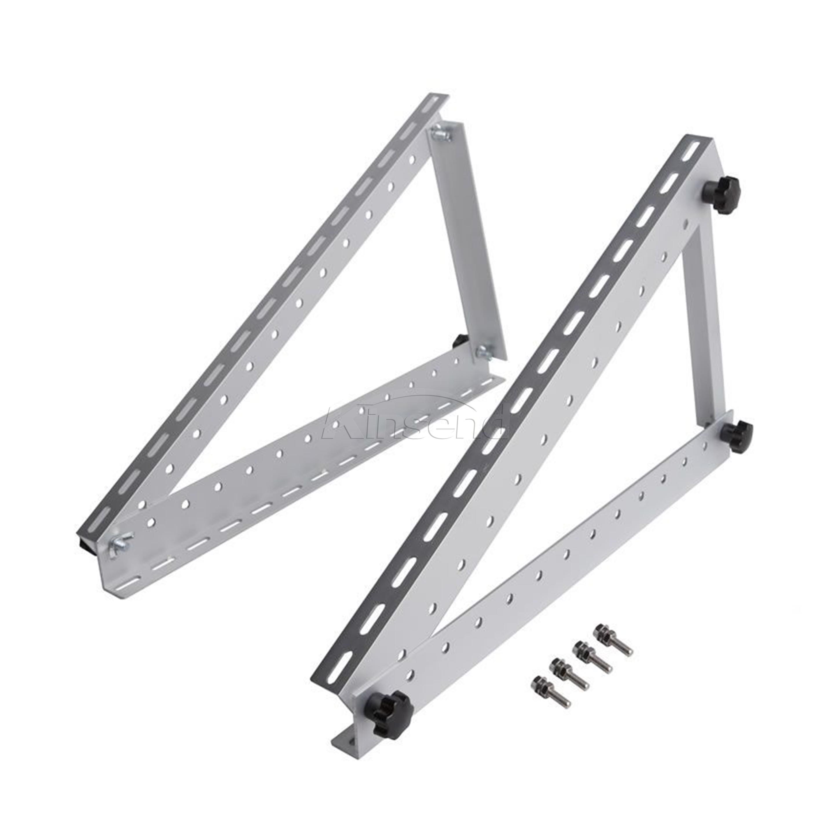 Adjustable portable solar brackets available on RVs, marine RVs, RVs, and rooftops,The installation holes on the solar panel frame match the installation holes on our bracket. Equipped with stainless steel accessories for fixation and installation. Size: 41*41mm;41*52mm;41*62mm;41*72mm;41*82mm. Adjustable solar tripod bracket 0 ° -60 °.