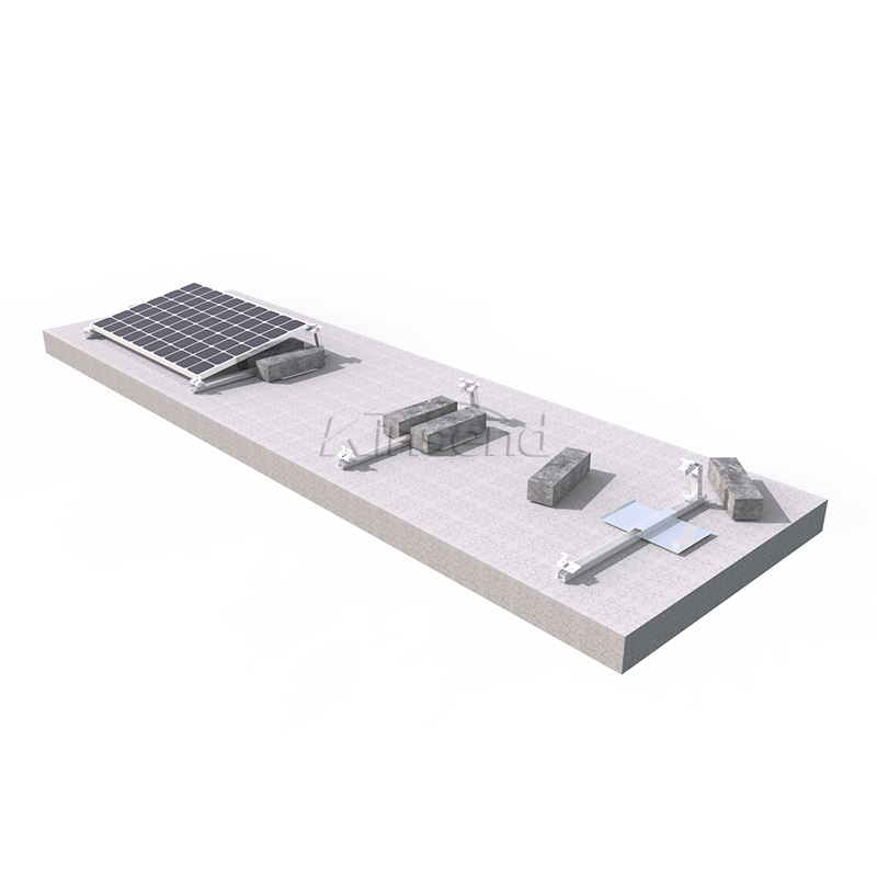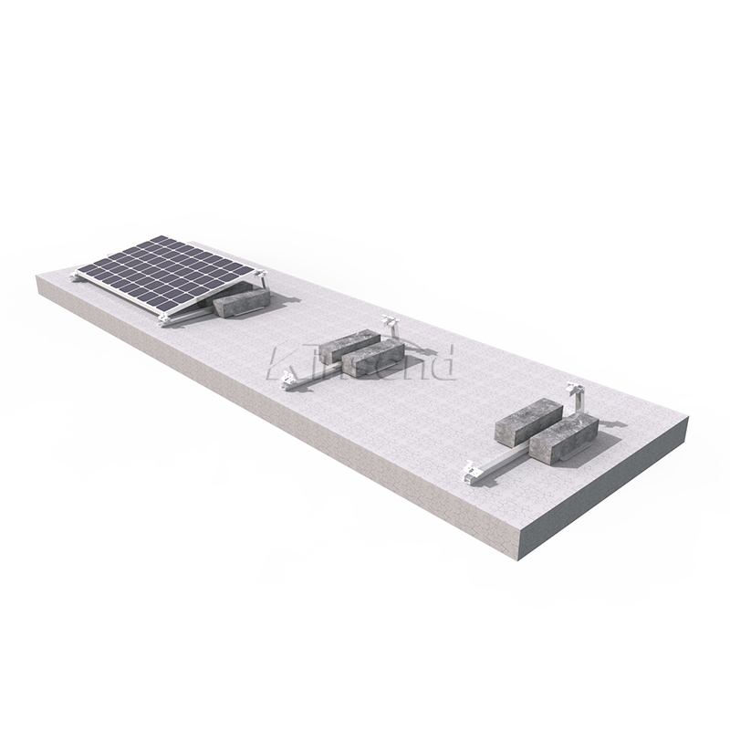 Ballast tripod flat rooftop mounting system is a type of solar panel mounting system that is designed for flat rooftops. This system uses a tripod structure that is weighted down with ballasts to provide a stable and secure foundation for the solar panels. Ballast tripod flat rooftop mounting system is relatively easy to install and can be done quickly, which can reduce the installation time and labor costs. ballast tripod flat rooftop mounting system is an effective and efficient solution for flat rooftop solar panel installations that require stability and security without the need for roof penetration.