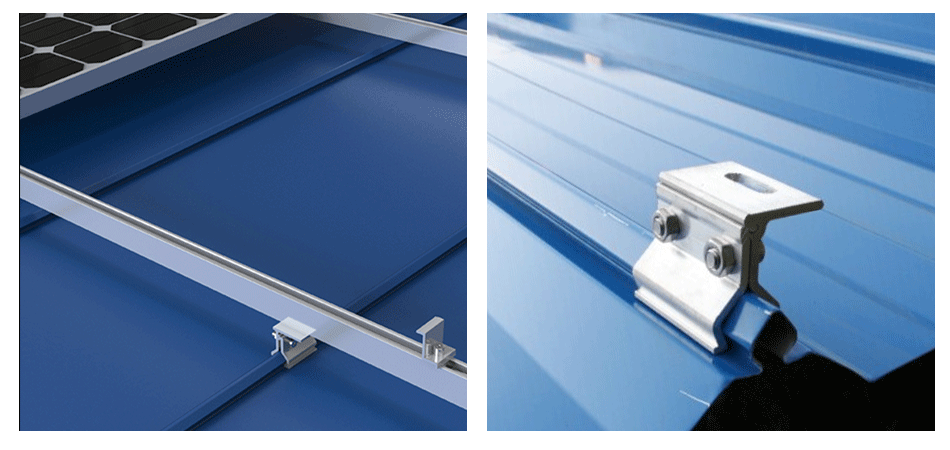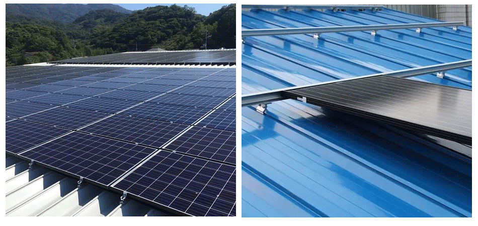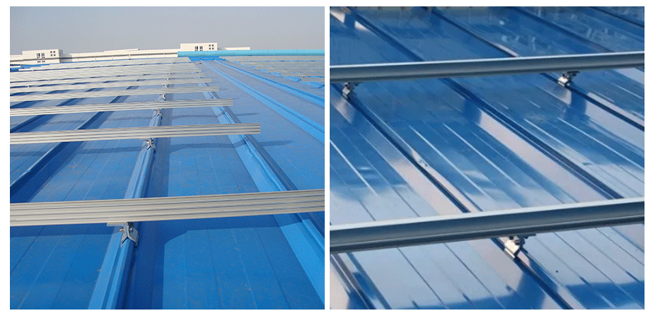New ECO SYSTEM Is a more lightweight and easy to install metal roof solar mounting systems. Fix the 406 cliplock standing seam solar clamp on the rooftop metal plate and tighten the bolts. Fix the ECO rail on the 406 cliplock with Hex screw. PV module on the ECO Rail with mid clamps and end clamps.Complete solar panels on tin roof installation quickly . The overall cost of the solution is relatively low, and the ease of installation and strong structure are favored by many customers in Southeast Asia.