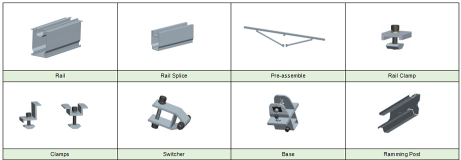 Al6005-T5 for aluminum profiles and clamps Stainless steel for fasten bolt and nut Hot Dip galvanized Q235 for U Pile Post |