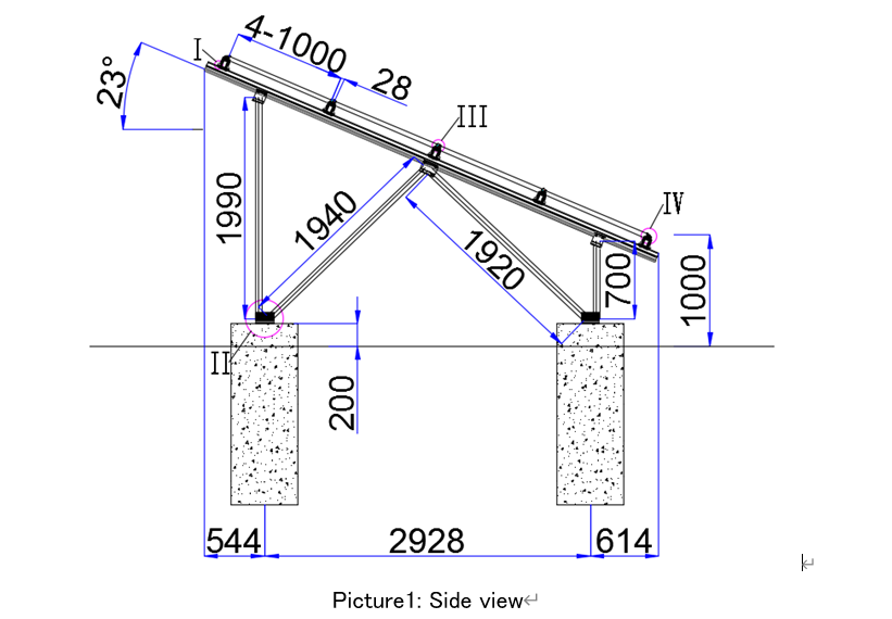 Kinsend is specialized in photovoltaic bracket system design. We will provide you with the design drawing of the following scheme in a timely manner. We look forward to providing you with timely design service.