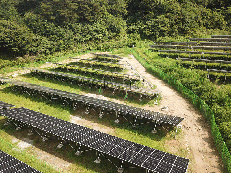 The ground project was successfully installed 860KW in Korea. Since the snow load in this area is not large, the customer wants a simple and fast installation scheme to keep the bracket within a reasonable maintenance height, so that the customer can easily maintenance the solar system in future . Concrete foundation ground solar system and high pre assembly enable customers to perfectly meet the expected needs.