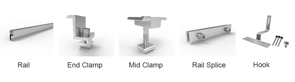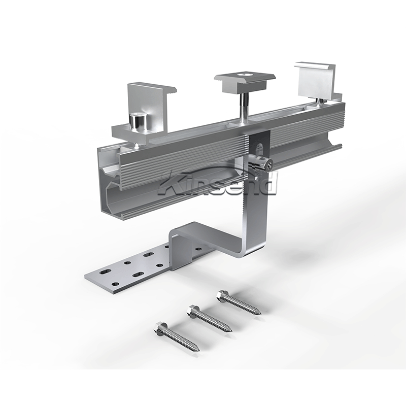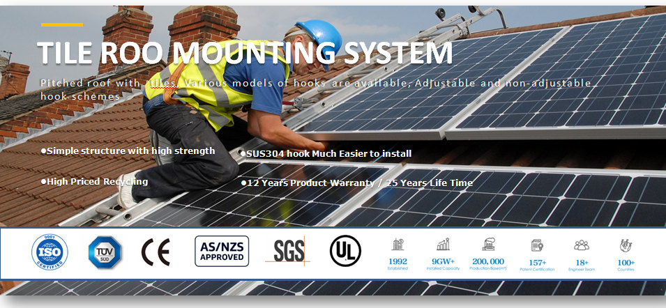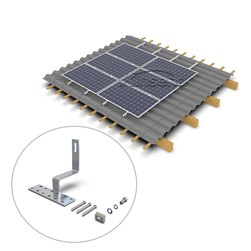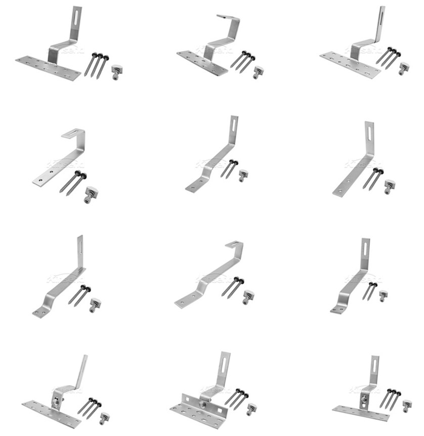 Use universal stainless steel roof hook for tile roof rack mounting system,stainless roof hook installation with Self-tapping screw M6.3*80mm Match with aluminum rail,Fix the solar panel with module clamps. A simple and fast installation solution