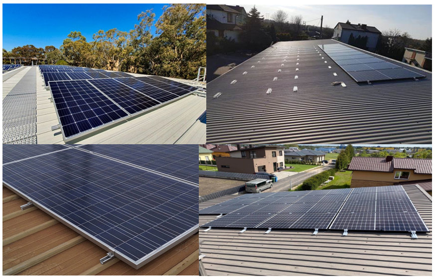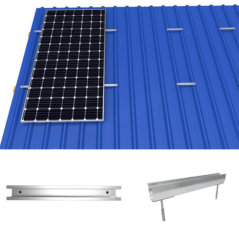Lightweight rails can be installed on metal roofs, The U-shaped structure is a combination of guide rails and clamp. low cost and quick installation. Riveted or screwed onto raised corrugations.