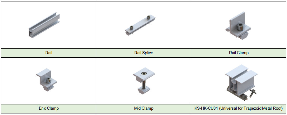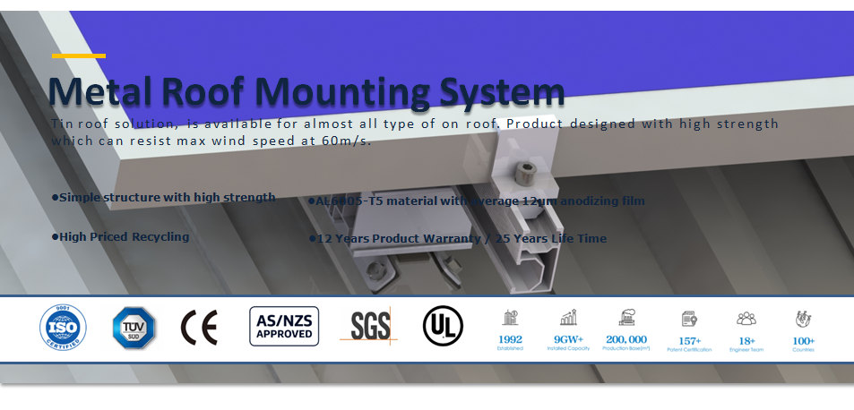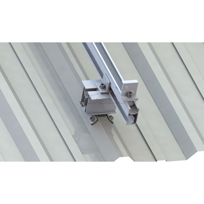Universal metal tin roof clamp with strong flexibility and easy installation on trapezoidal type metal rooftop. The perfect combination with CR series rails ensures efficient installation of the entire system and ensures its safety